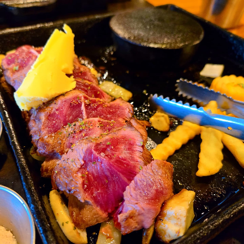 특히 스테이크를 뜨거운 돌판에 직접 구워 먹는 독특한 방식이 매력적이에요.