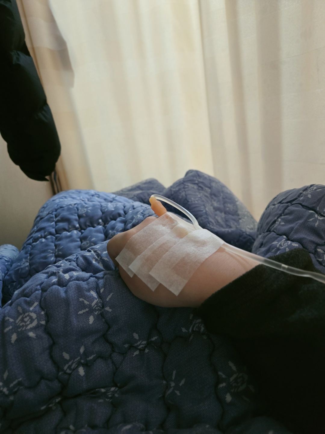 엉덩이 주사를 맞고 끝나는 줄 알았는데 수액실에 들어가 독감 치료 수액까지 맞아야 한다고 한다.