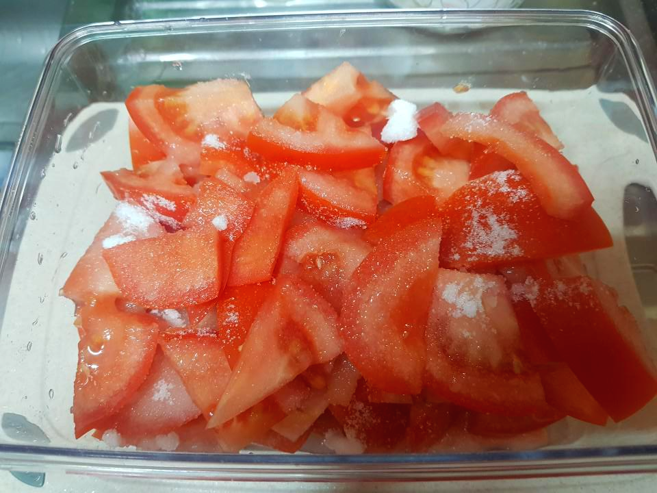 토마토는 물이 많이 나와서 또 설탕을 너무 적게